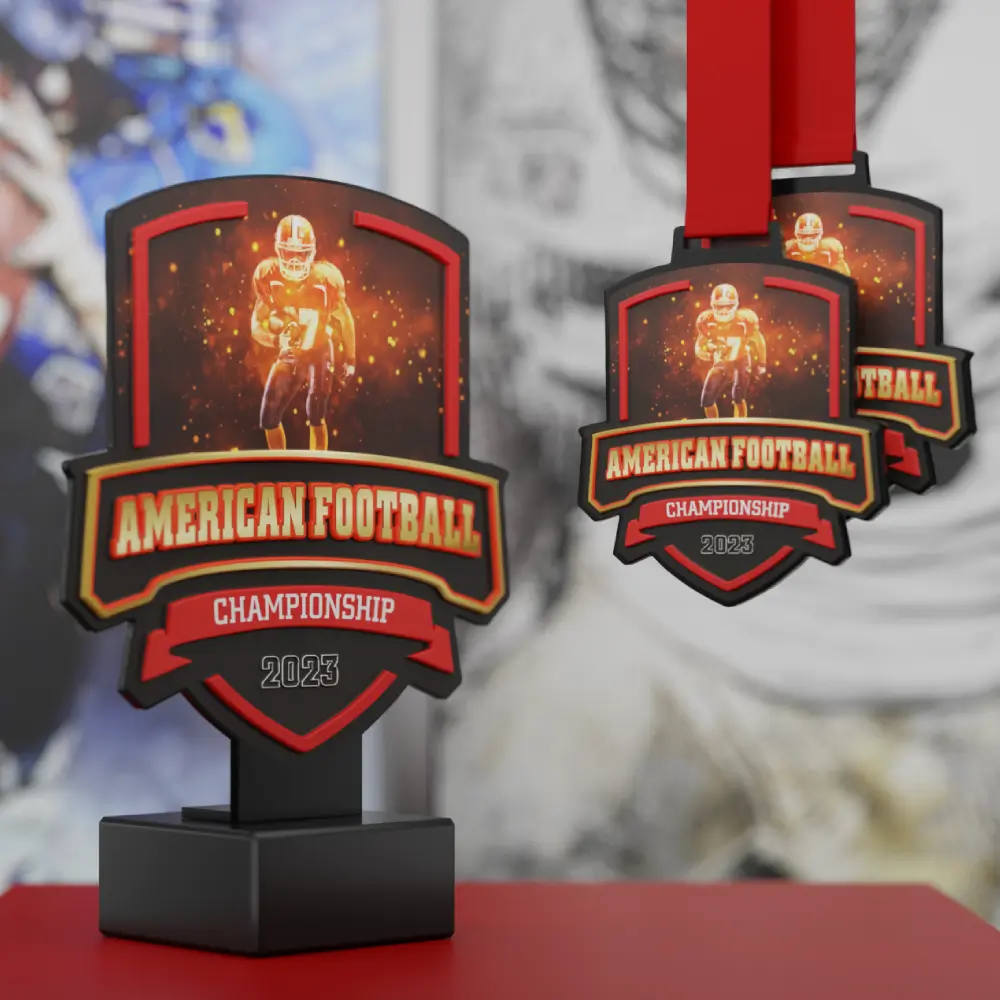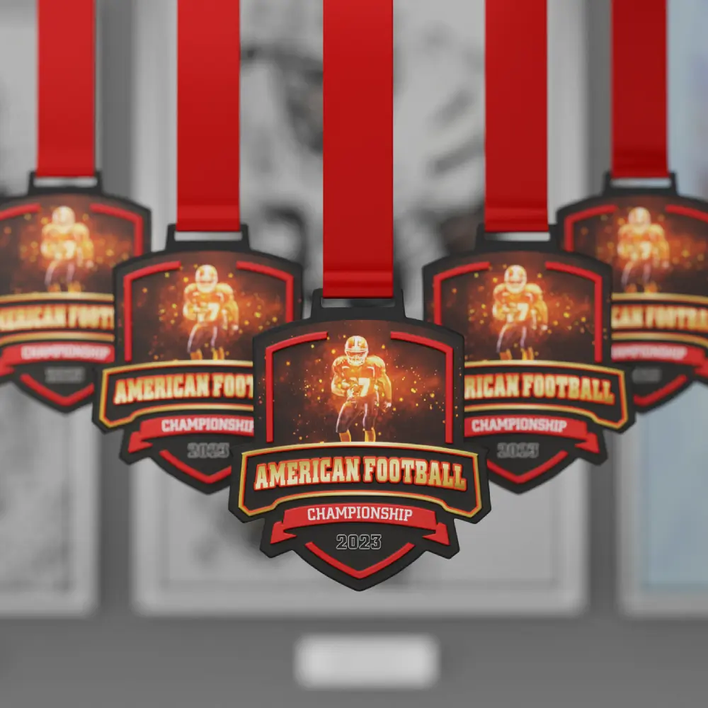 In Winmed comprendiamo quanto sia importante che un premio sia unico e inimitabile. Ecco perché le nostre medaglie originali per le competizioni di football americano vengono fornite con una statuetta abbinata. Ciò rende l’intero set un riconoscimento unico e impressionante per i migliori giocatori di questo sport. Lavoriamo con dedizione e passione su ogni progetto per fornire trofei personalizzati unici che appariranno perfetti sul podio e successivamente sullo scaffale del vincitore. Di conseguenza il destinatario non solo riceverà un bellissimo ricordo ma ricorderà anche l’occasione di aver ricevuto questo premio più a lungo.
