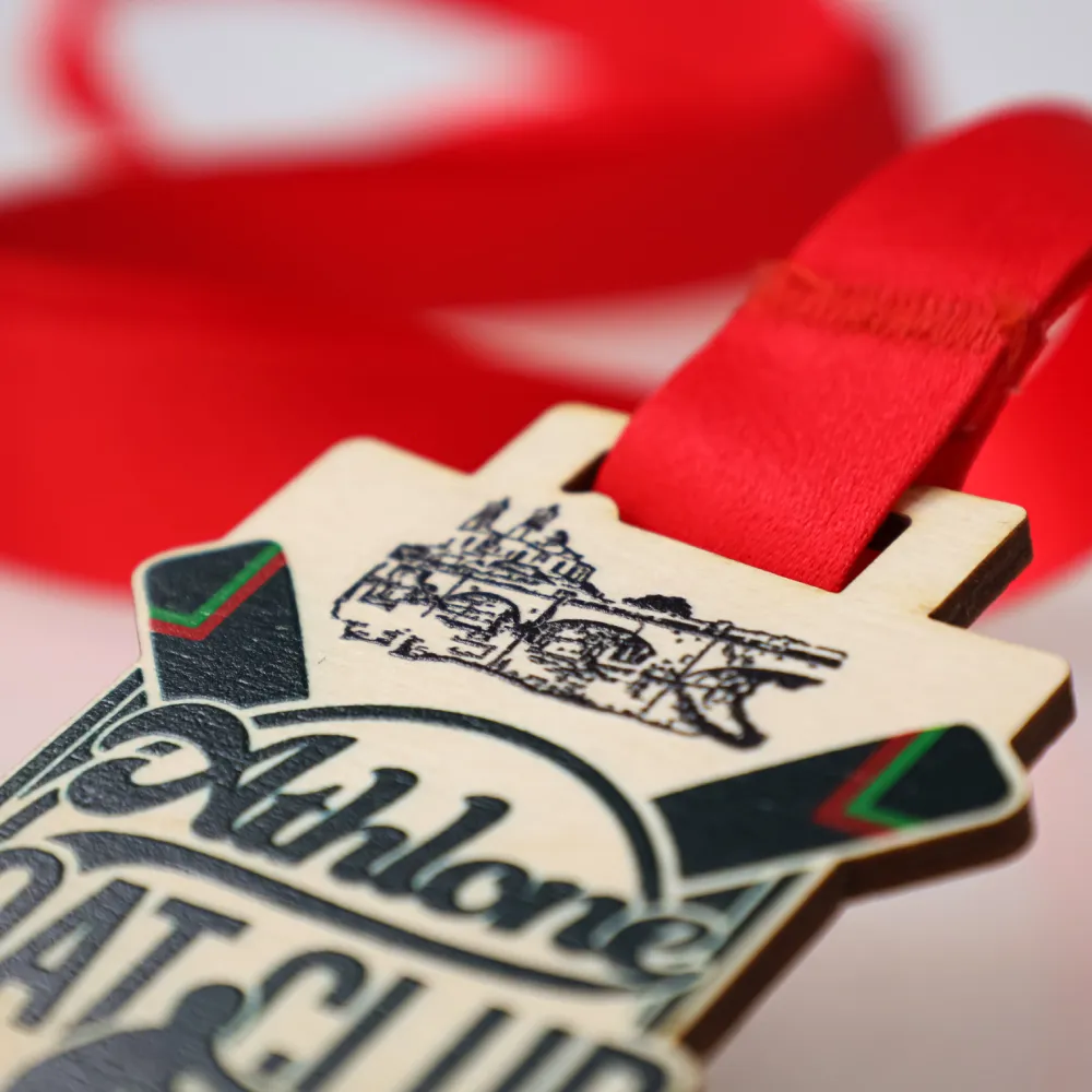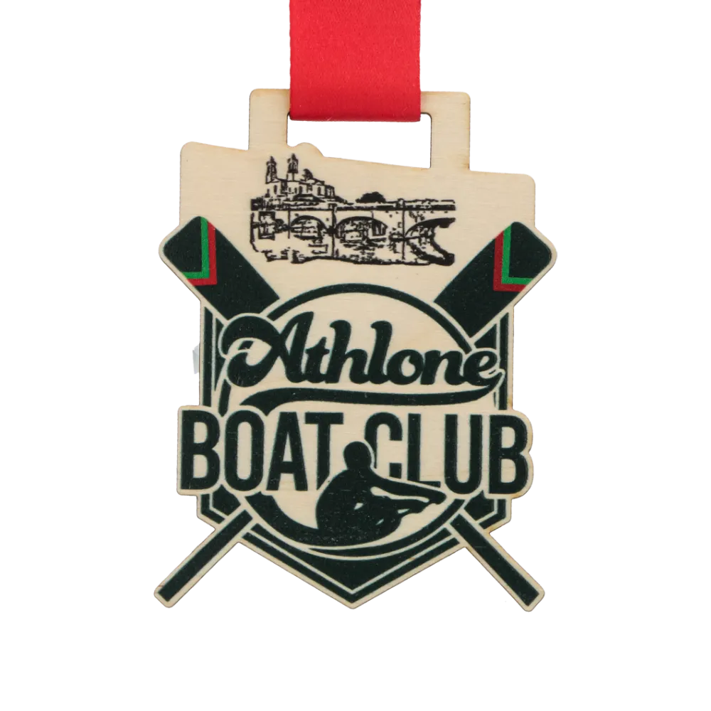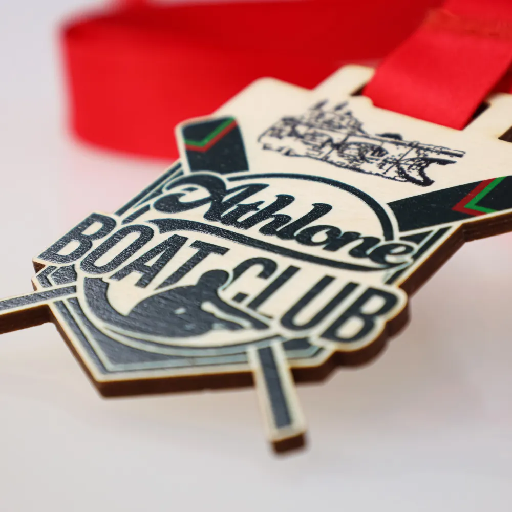 Una medaglia originale per l'Athlone Boat Club 2025, in cui la precisione esecutiva va di pari passo con la durabilità. Ritagliata a forma di scudo in compensato naturale, cattura immediatamente l'attenzione. Grazie alla moderna stampa UV, il panorama della città e i simboli del canottaggio sono straordinariamente nitidi e la loro texture è percepibile al tatto. Queste medaglie in legno non sbiadiranno e conserveranno il loro aspetto impeccabile per molti anni.