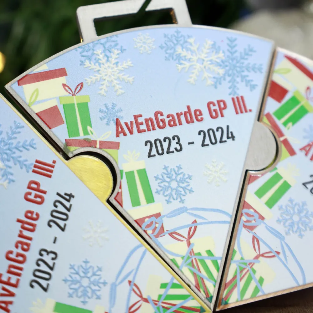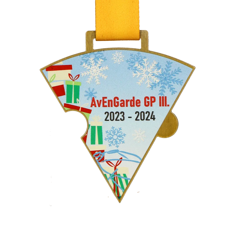 Il torneo di scherma Avengarde GP III noto anche come Coppa Mikulás si è svolto a Komárom. Questo evento ha riunito appassionati di scherma sia professionisti che dilettanti in competizione per essere i migliori. Il suo scopo è promuovere la scherma e la sana competizione. Abbiamo avuto l’onore di fornire medaglie su misura per i partecipanti. Questa volta abbiamo creato una medaglia puzzle che simboleggia che ogni partecipante è una parte essenziale del tutto. Abbiamo utilizzato il taglio laser di precisione per garantire che i pezzi del puzzle si incastrassero perfettamente. La grafica a colori delle medaglie è dovuta alla stampa UV. La medaglia è un segno di apprezzamento per gli appassionati di scherma.