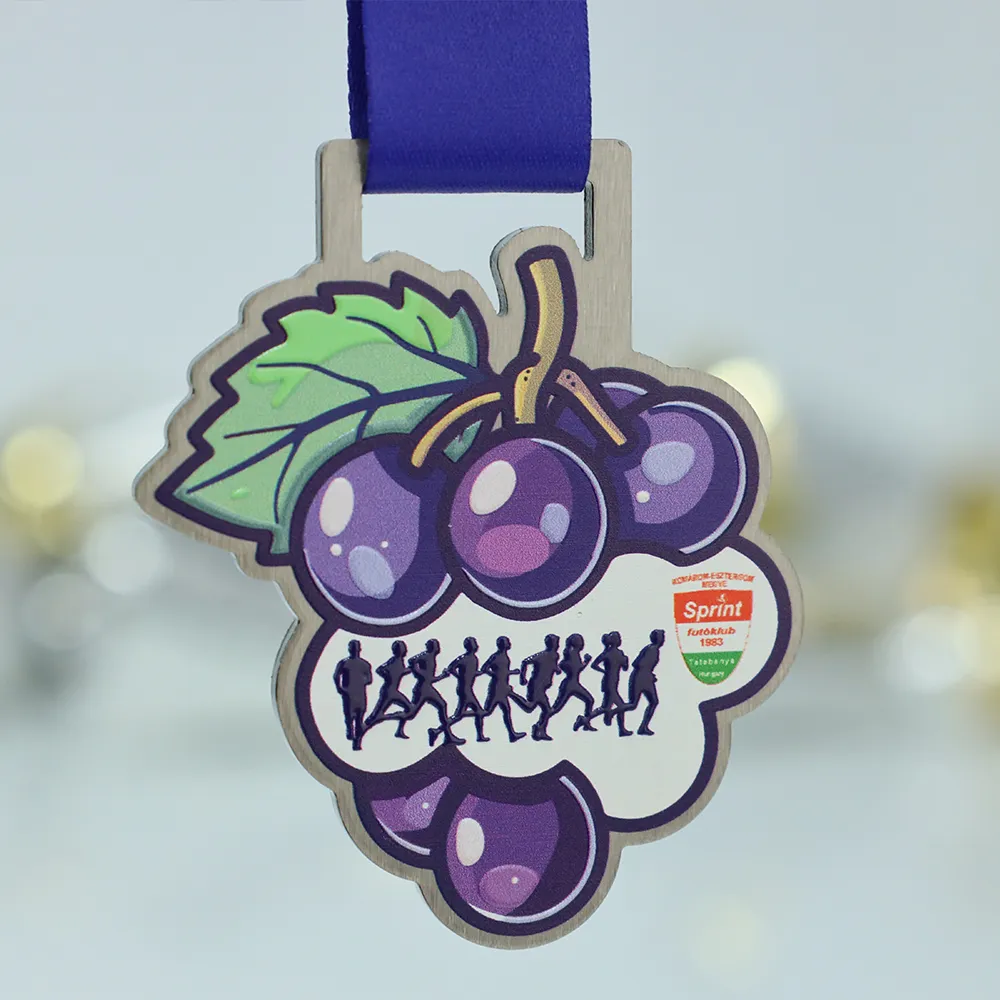 Presentiamo una sorprendente medaglia da corsa creata per l'evento BAKONYALJA Futás, combinando solida artigianalità con un design creativo radicato nella regione. Il metallo resistente fornisce uno sfondo eccellente per l'immagine colorata di uva e foglie, applicata con stampa UV precisa per garantire colori vivaci e un aspetto moderno. È un prodotto che fonde efficacemente la funzione di un premio sportivo con un'alta estetica, costruendo il prestigio dell'organizzatore agli occhi degli atleti.