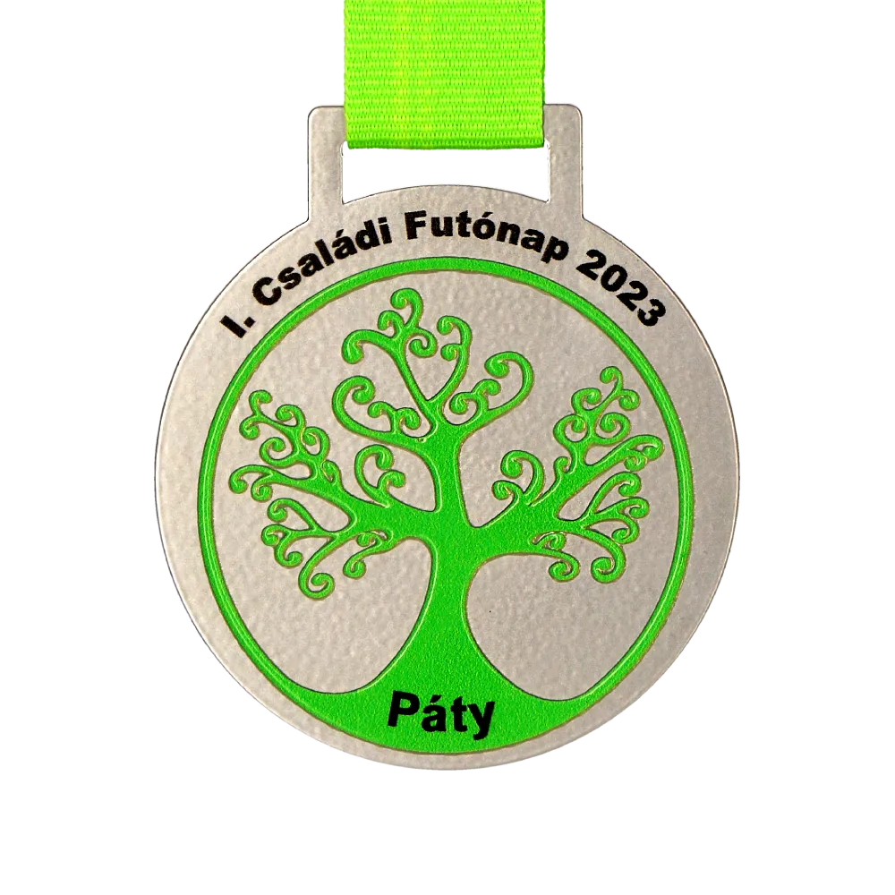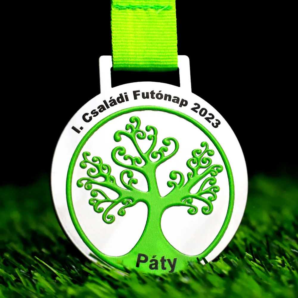 Családi Futónap o Giornata della Corsa in Famiglia è un evento speciale che riunisce corridori di diverse generazioni. Come produttore di medaglie per questa occasione abbiamo fatto ogni sforzo per creare un design memorabile. Pertanto abbiamo realizzato le medaglie da corsa basate su un design individualizzato. Le abbiamo realizzate in metallo tagliato al laser in una classica forma rotonda. Questa è una forma universale ed elegante che piace a molti atleti. La caratteristica distintiva delle nostre medaglie in acciaio stampato inossidabile è il vibrante colore verde della stampa che aggiunge un accento fresco al loro aspetto tradizionale. Inoltre le decorazioni sulle medaglie su misura sono tridimensionali aggiungendo profondità e unicità a ogni pezzo. Il design semplice di questi premi consente alla bellezza dei dettagli di risplendere senza sopraffarli facendo emergere la loro natura eccezionale.