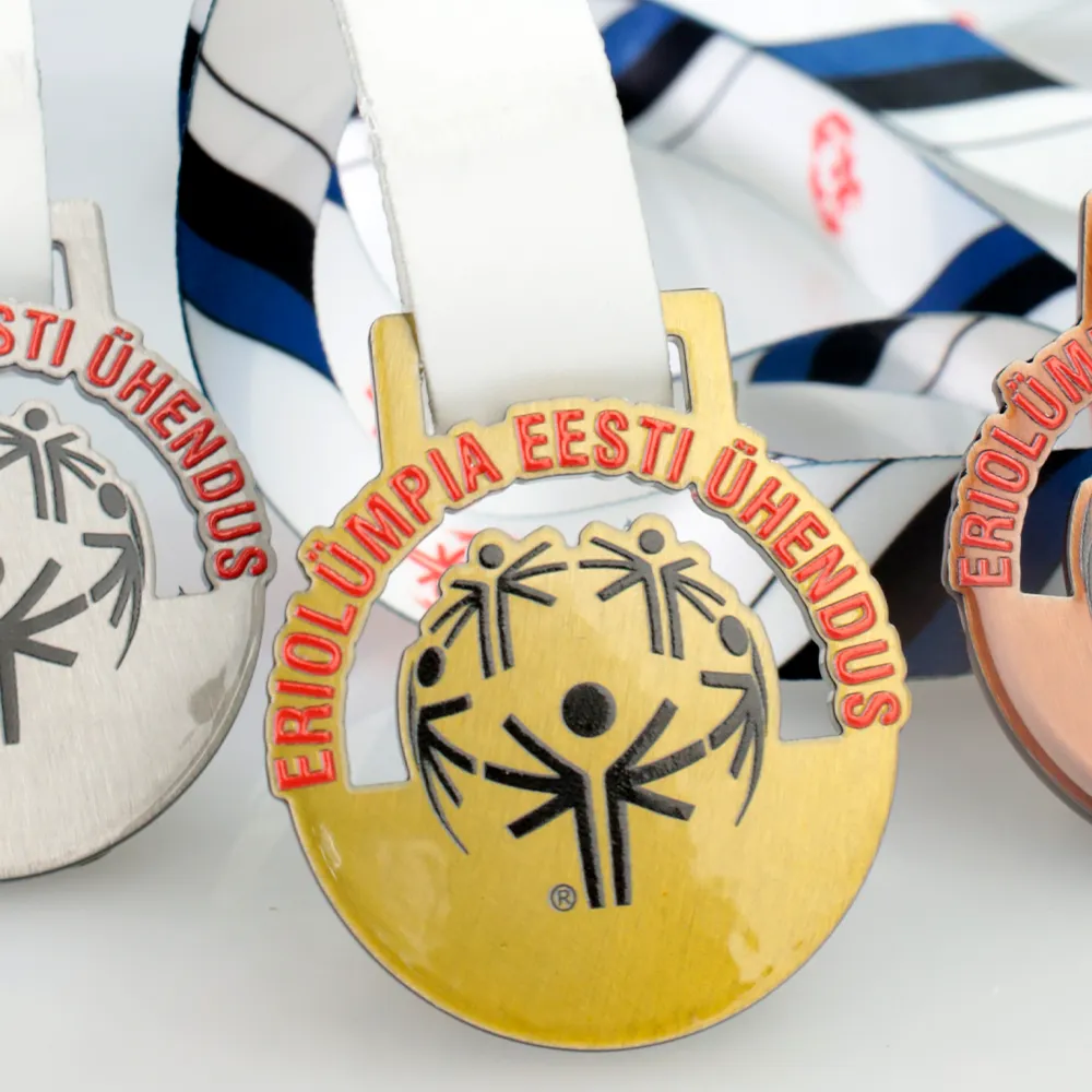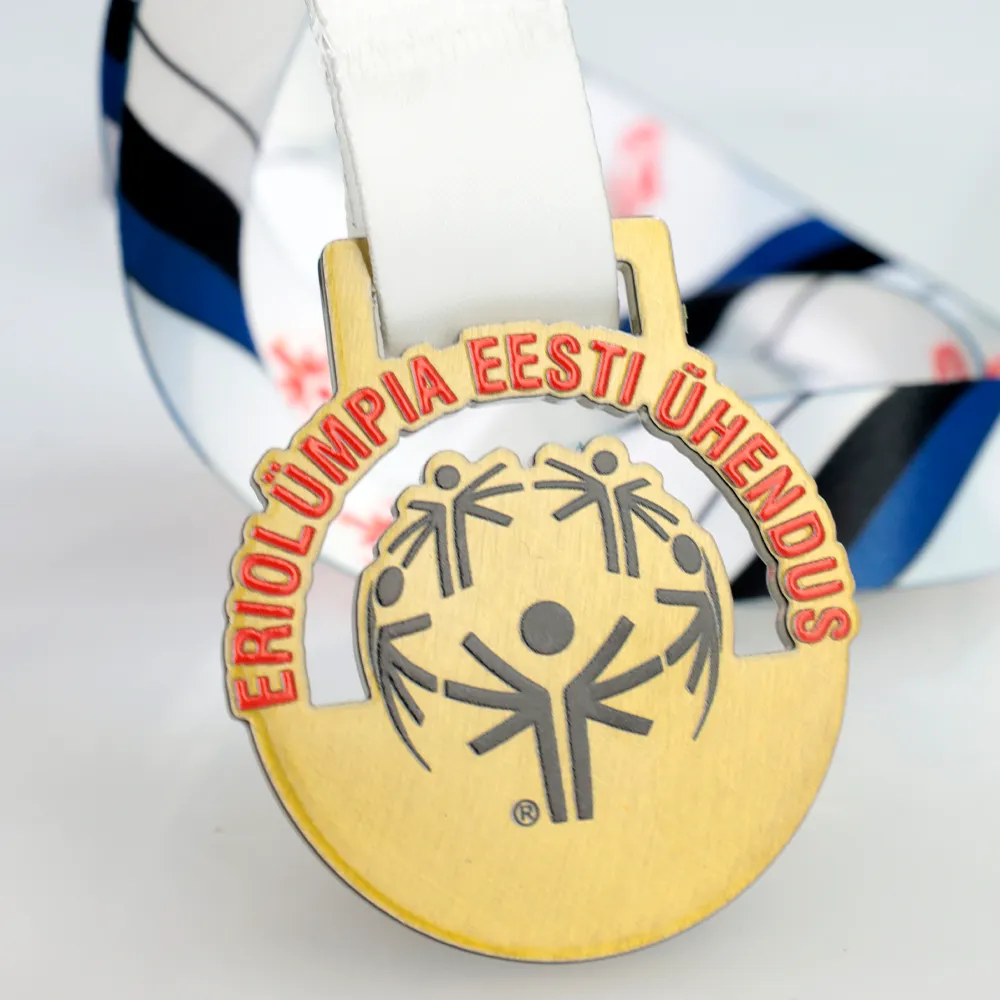 Una medaglia personalizzata che abbiamo creato per l'evento Eriolümpia Eesti Ühendus si distingue per il suo design semplice ma audace. Abbiamo tagliato la medaglia al laser, consentendo una forma precisa e una finitura perfetta. Il logo e le iscrizioni sono stati applicati utilizzando la tecnologia di stampa UV.