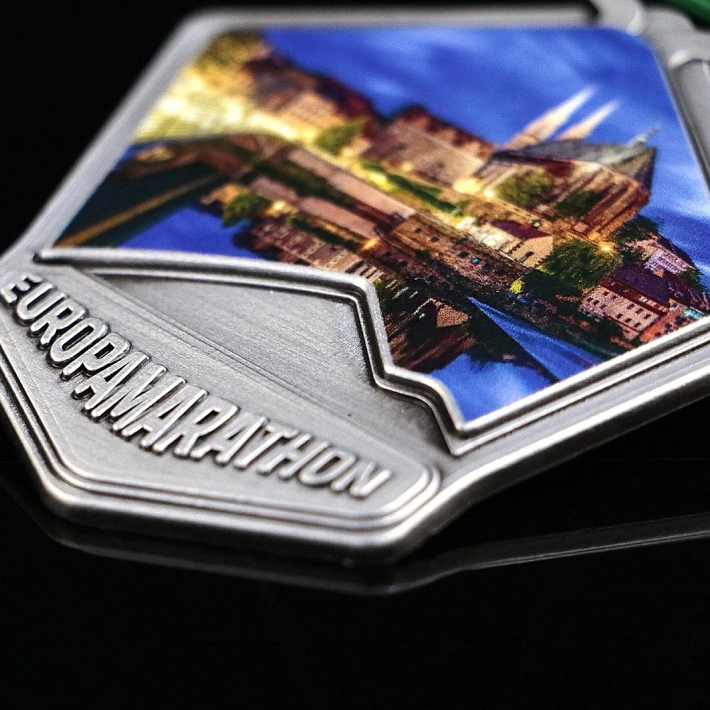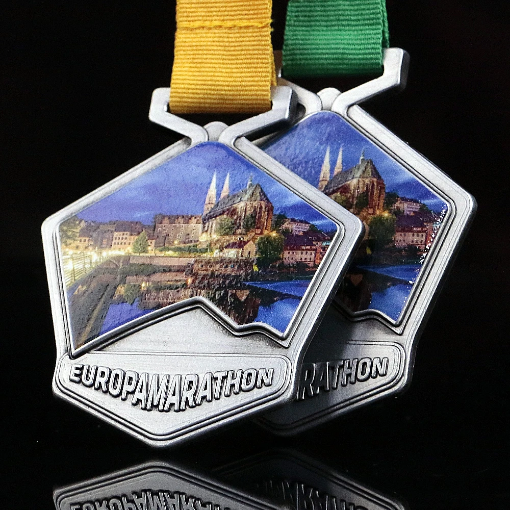 Cerchiamo di progettare forme uniche di medaglie ogni volta. Abbinare l’aspetto della medaglia all’atmosfera dell’evento è un aspetto importante, grazie al quale i partecipanti ricorderanno l’evento che organizzi più a lungo. Con Winmed puoi farlo davvero facilmente – basta incaricarci di preparare un progetto individuale come ha fatto l’organizzatore della Europa Marathon. Nel preparare i premi per questo evento podistico ci siamo concentrati su solide medaglie in fusione con una sovrastampa. Le medaglie da corsa hanno una forma interessante con uno spazio appositamente separato per una stampa colorata e un’iscrizione tridimensionale con il nome dell’evento. Grazie a questa divisione, la grafica e l’iscrizione si compongono armoniosamente e si presentano esteticamente. Inoltre, la medaglia ha il colore dell’argento antico che è lo sfondo perfetto per accattivanti grafiche colorate. A molti organizzatori di eventi piace la forma della medaglia. Ecco perché questo è un altro progetto che abbiamo avuto l’opportunità di realizzare in questa forma.