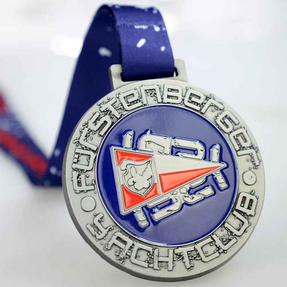 Una medaglia su misura per i partecipanti al Fürstenberger Yachtclub 2024, questo premio unico è perfetto per gli appassionati di vela. La medaglia è adornata con un motivo di yacht e un distintivo simbolo velico nei colori rosso e blu marino. Questa medaglia pressofusa consente dettagli precisi e i suoi elementi colorati sono riempiti di vernice, aggiungendo al suo aspetto eccezionale. È un ottimo ricordo per i membri del club.