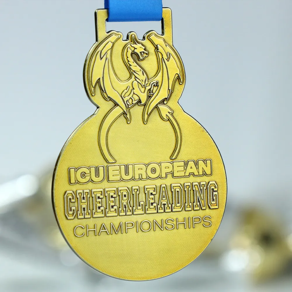 Ecco una prestigiosa medaglia su misura creata per gli ICU European Cheerleading Championships 2025, combinando eleganza con un simbolismo sportivo dinamico. La base, realizzata in lega di zinco, è stata modellata in una forma unica in cui la tecnologia di pressofusione di precisione ha permesso una riproduzione dettagliata di una creatura mitica che sovrasta il nome della competizione. È la combinazione ideale di valore estetico e durata, servendo come vetrina perfetta per questo evento internazionale.