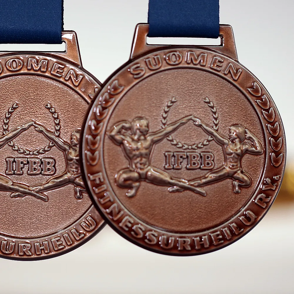 Impegnarsi nello sport porta molti benefici e ogni disciplina si concentra sullo sviluppo di un aspetto diverso. Coloro che apprezzano la forza e una figura scolpita troveranno il loro posto negli sport di forza. Ecco perché è stato organizzato IFBB Fitnessurheilu Ry dove sono state assegnate medaglie in fusione stampate commemorative. La nostra azienda si è occupata della loro progettazione e produzione. I nostri specialisti hanno creato medaglie uniche in una classica forma rotonda. Nella parte centrale abbiamo posizionato decorazioni tridimensionali con l’effigie di una figura in pose caratteristiche di questo sport. La decorazione perfettamente riprodotta è circondata da un testo con il nome dell’evento. L’intera presentazione è completata da un nastro personalizzato che si adatta perfettamente alla medaglia d’oro d’argento e di bronzo.