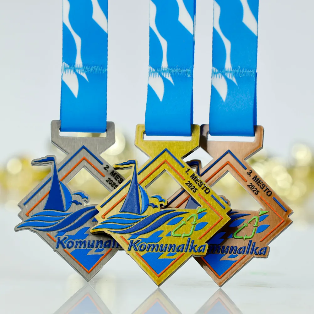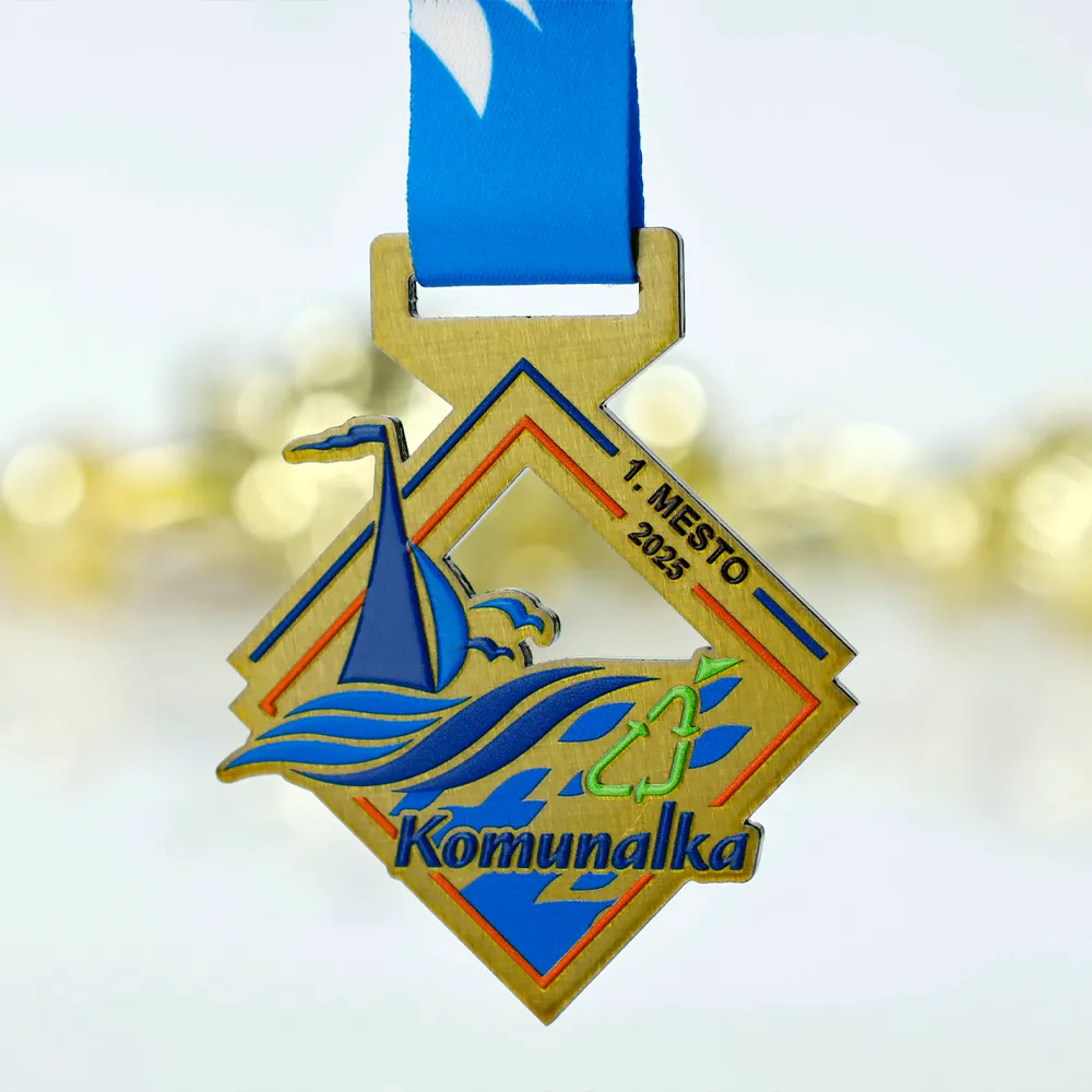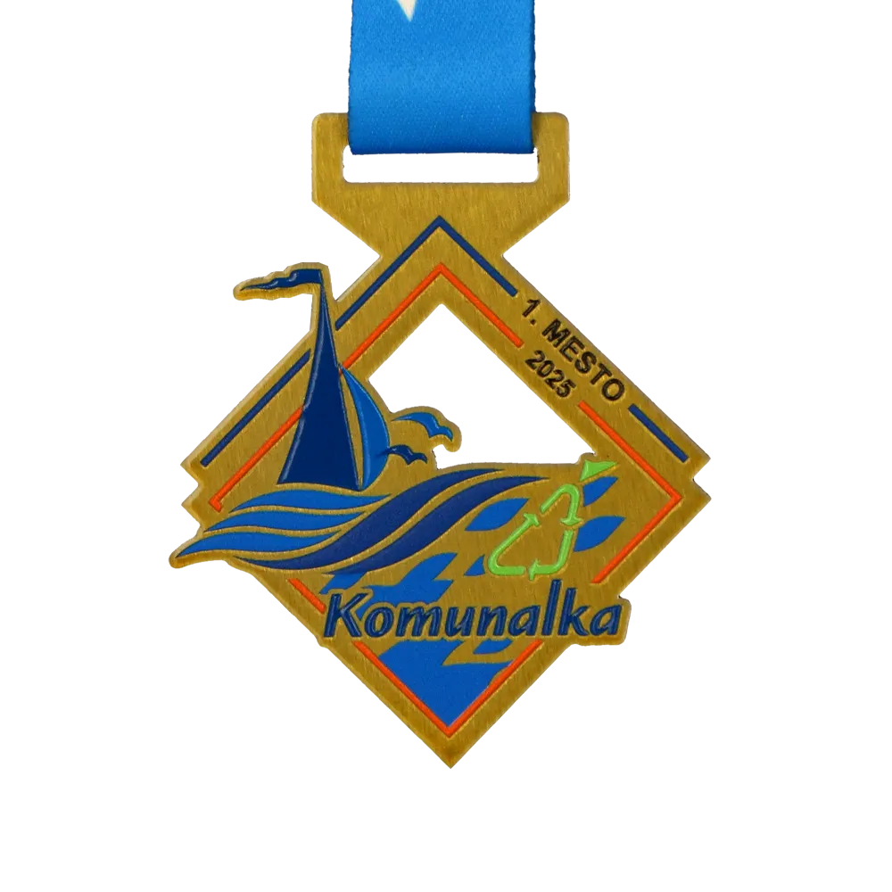 Medaglia su misura realizzata in metallo, tagliata al laser. Progettata per la regata o competizione velica Komunalka 2025. La medaglia presenta un motivo di yacht, onde e un gabbiano, mentre i dettagli colorati sono applicati con stampa UV durevole. La personalizzazione include il nome, l'edizione e l'anno dell'evento.