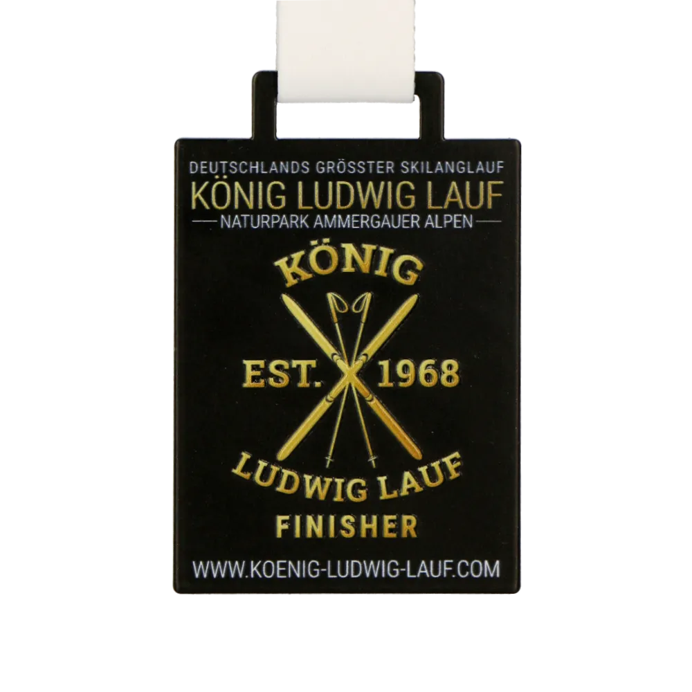 L’attività sportiva è possibile anche in inverno. Gli sport invernali hanno molti appassionati che partecipano a varie competizioni e gare. Uno di questi eventi è la König Ludwig Lauf. Il suo carattere invernale si sente non solo nell’atmosfera ma anche nelle medaglie preparate per i concorrenti. Hanno ricevuto uniche medaglie su misura con un design elegante. Hanno una classica forma rettangolare e colore nero che è lo sfondo perfetto per una stampa personalizzata. Sulla superficie della medaglia ci sono anche decorazioni realizzate con precisione con un tema invernale. La loro struttura si sente sotto le dita. Il tutto è completato da un nastro a sublimazione stilisticamente abbinato.