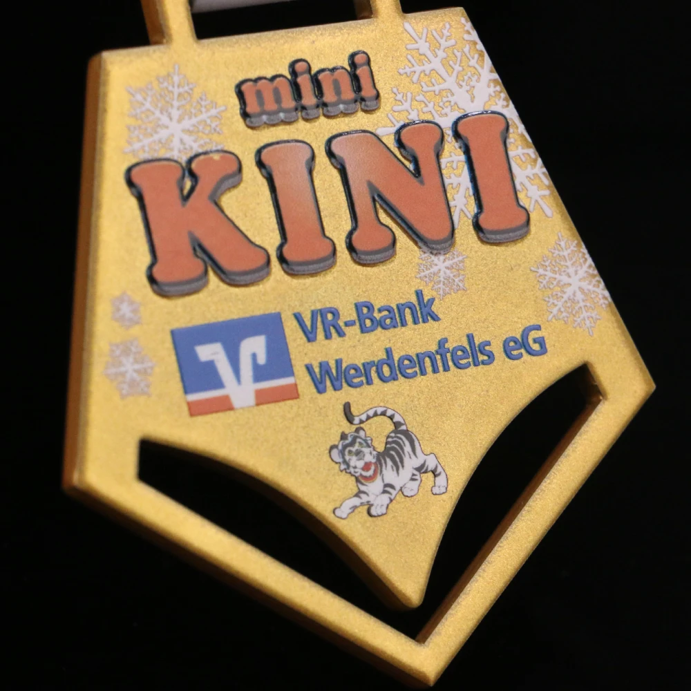 Gli sport invernali sono una disciplina speciale i cui appassionati amano sentire la brezza gelida sui loro volti. I partecipanti alle competizioni invernali amano anche ricevere bellissimi premi per commemorare i loro risultati. Ecco perché abbiamo preparato originali medaglie in acciaio stampato per la Mini Kini con una forma precisa tagliata al laser arricchita da un ritaglio interno abbinato. Abbiamo riempito la medaglia con una stampa colorata la cui struttura può essere sentita sotto le dita. Il tutto brilla alla luce rendendo impossibile distogliere lo sguardo.