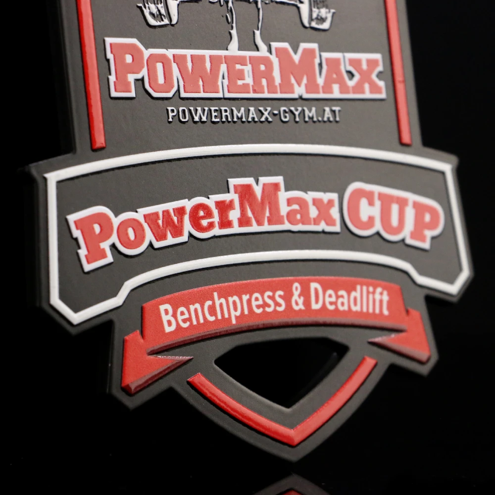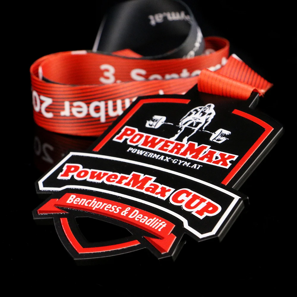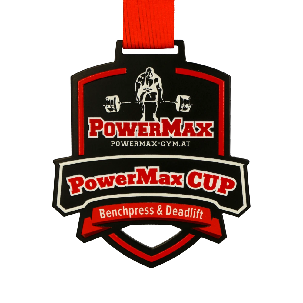 Ci sono diverse ragioni per cui una medaglia cattura l’attenzione. La dimensione è certamente una di queste, poiché gioca un ruolo importante quando si tratta di competizioni di sport di forza. Dopotutto, una medaglia più grande appare migliore sul fisico possente dei bodybuilder tonificato alla perfezione. Per questo motivo abbiamo progettato le medaglie in acciaio stampato per la PowerMax Cup in una dimensione personalizzata. Inoltre, si distinguono anche per la loro forma originale ottenuta utilizzando la tecnica del taglio laser. Le medaglie per le competizioni di sport di forza si presentano anche in un colore nero profondo che enfatizza la stampa colorata. Indubbiamente l’attenzione di tutti è attratta dagli abbellimenti rossi e bianchi che si fondono perfettamente insieme. L’intero design brilla magnificamente enfatizzando il motivo preselezionato espresso attraverso un elemento grafico che raffigura un atleta che solleva pesi. Questo incredibile design è completato da un nastro personalizzato abbinato.