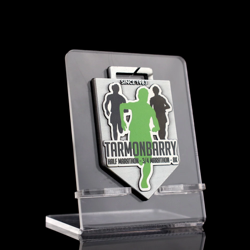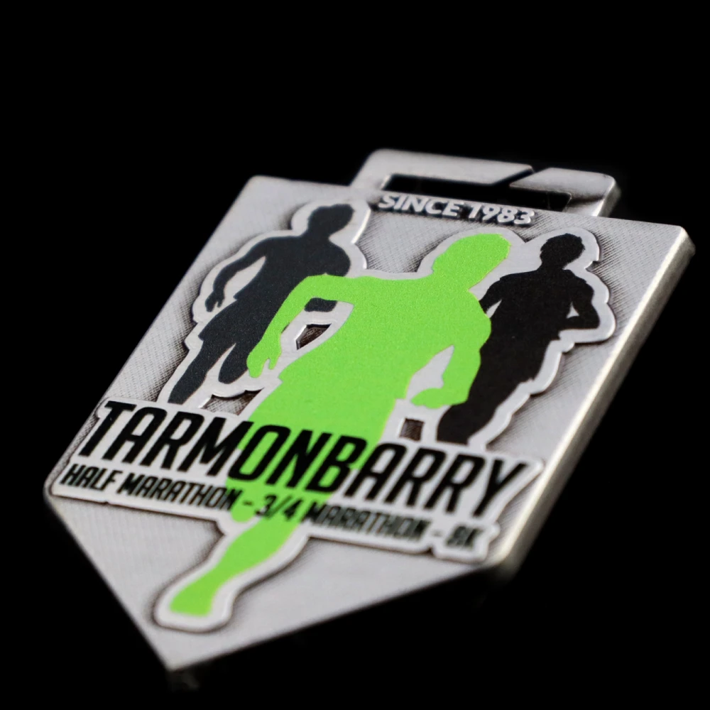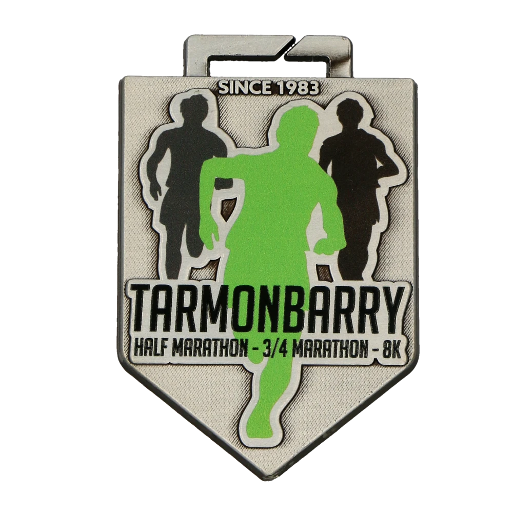 I migliori corridori hanno molte medaglie nella loro collezione che commemorano la loro vittoria. Pertanto i nostri clienti quando organizzano competizioni podistiche prestano particolare attenzione all’aspetto e al design dei loro premi. In WinMed possono creare un progetto da soli o incaricare i nostri specialisti di farlo. Uno di questi progetti sono le medaglie su misura per la Tarmonbarry Half Marathon. Queste moderne medaglie in fusione stampate hanno una forma originale e un colore argento. Sulla loro superficie c’è una stampa colorata con un motivo di corsa perfettamente abbinato. Pertanto queste medaglie da corsa si distinguono per il loro design moderno e il carattere memorabile.