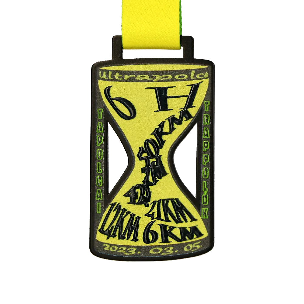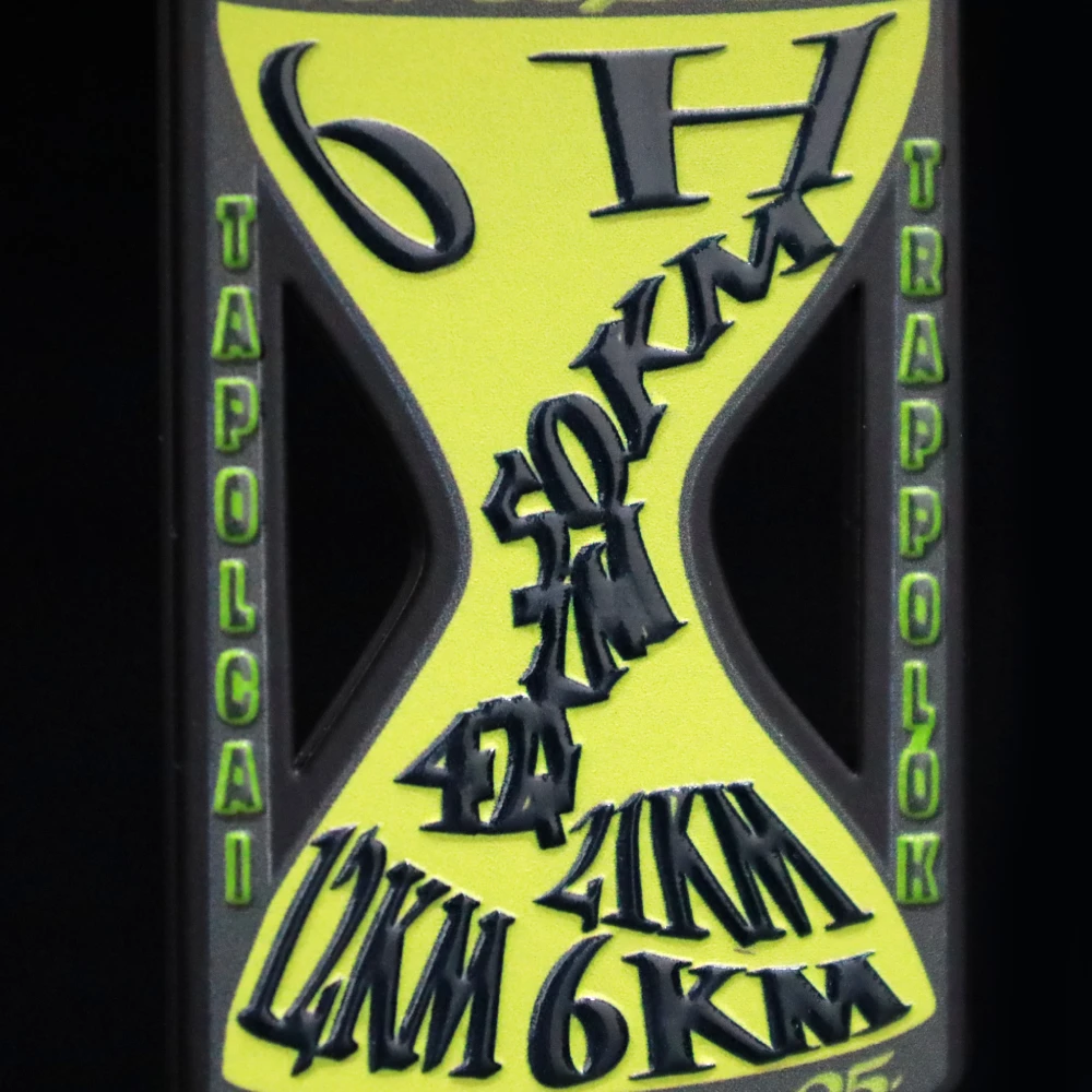 Ultrappolca è una gara campestre che si è svolta a Tapolca nel marzo 2023. La gara aveva varie categorie tra cui una corsa di 10 km una corsa di 5 km e una corsa per bambini. Queste competizioni sono state organizzate dalle autorità locali ed erano aperte a chiunque volesse partecipare. Incoraggiati dalla fantastica atmosfera e dal percorso di gara ben progettato un gran numero di partecipanti ha preso parte all’evento. Al traguardo ogni partecipante ha ricevuto commemorative medaglie in acciaio stampato preparate dalla nostra azienda. In Winmed ci siamo presi cura del design individuale che si abbinava perfettamente all’atmosfera dell’evento. Di conseguenza le medaglie da corsa che abbiamo creato hanno una forma originale arricchita con motivi tagliati al laser. Inoltre abbiamo incorporato un design che ricorda una clessidra al centro. L’intero design cattura l’occhio con la sua stampa tridimensionale applicata con precisione in colori vivaci.