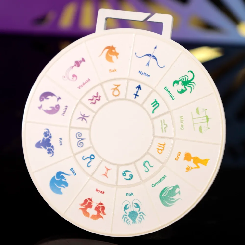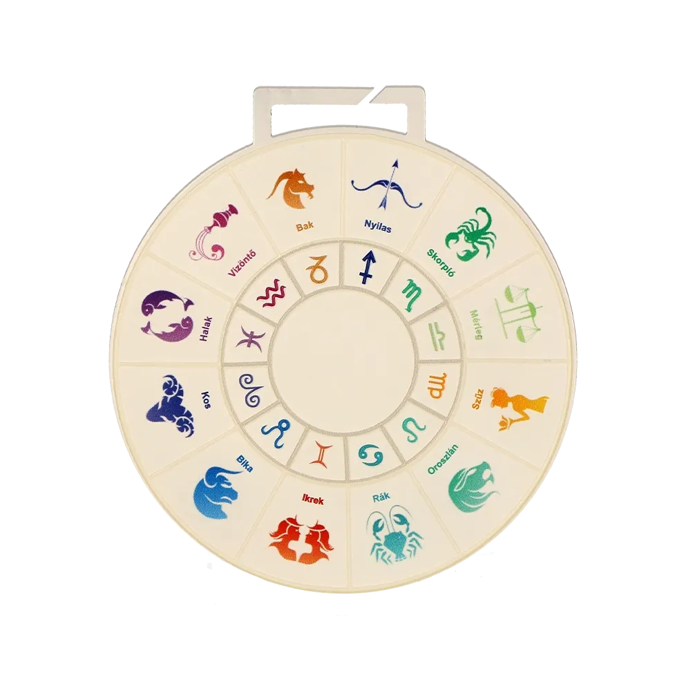 Una medaglia personalizzata con un motivo del segno zodiacale per i partecipanti a una corsa virtuale. Presenta tutti i segni zodiacali in grafiche colorate, creando un modello interessante e simbolico.