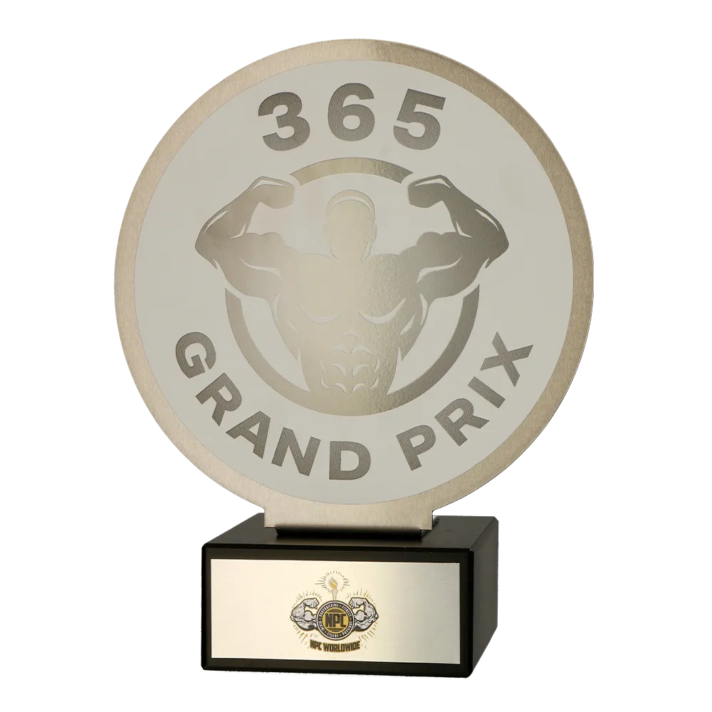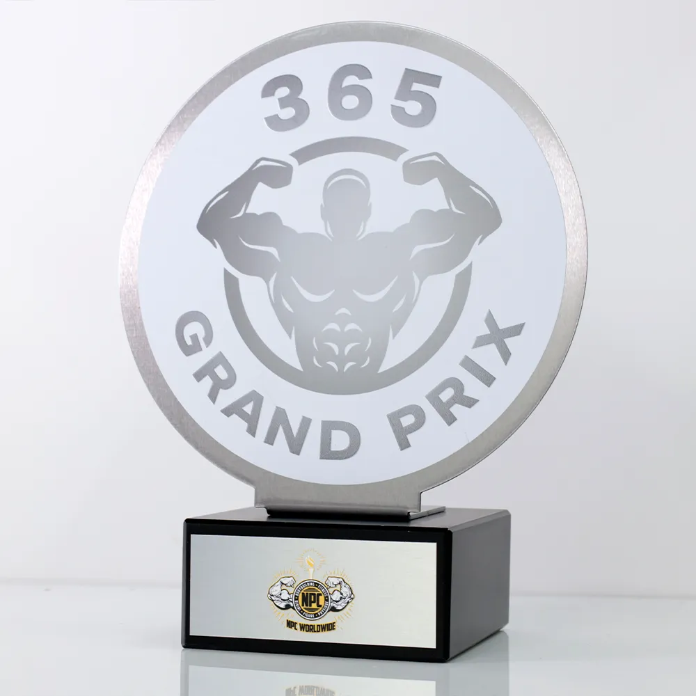 Trofeo personalizzato creato per la competizione di bodybuilding "365 Grand Prix". Riconosce i partecipanti che hanno ottenuto i migliori risultati con la loro forza, determinazione e fisico. La forma rotonda e i dettagli sottili fanno risaltare il trofeo. Il suo design semplice ma sorprendente celebra sia la forza che l'estetica, catturando l'essenza delle competizioni di bodybuilding.