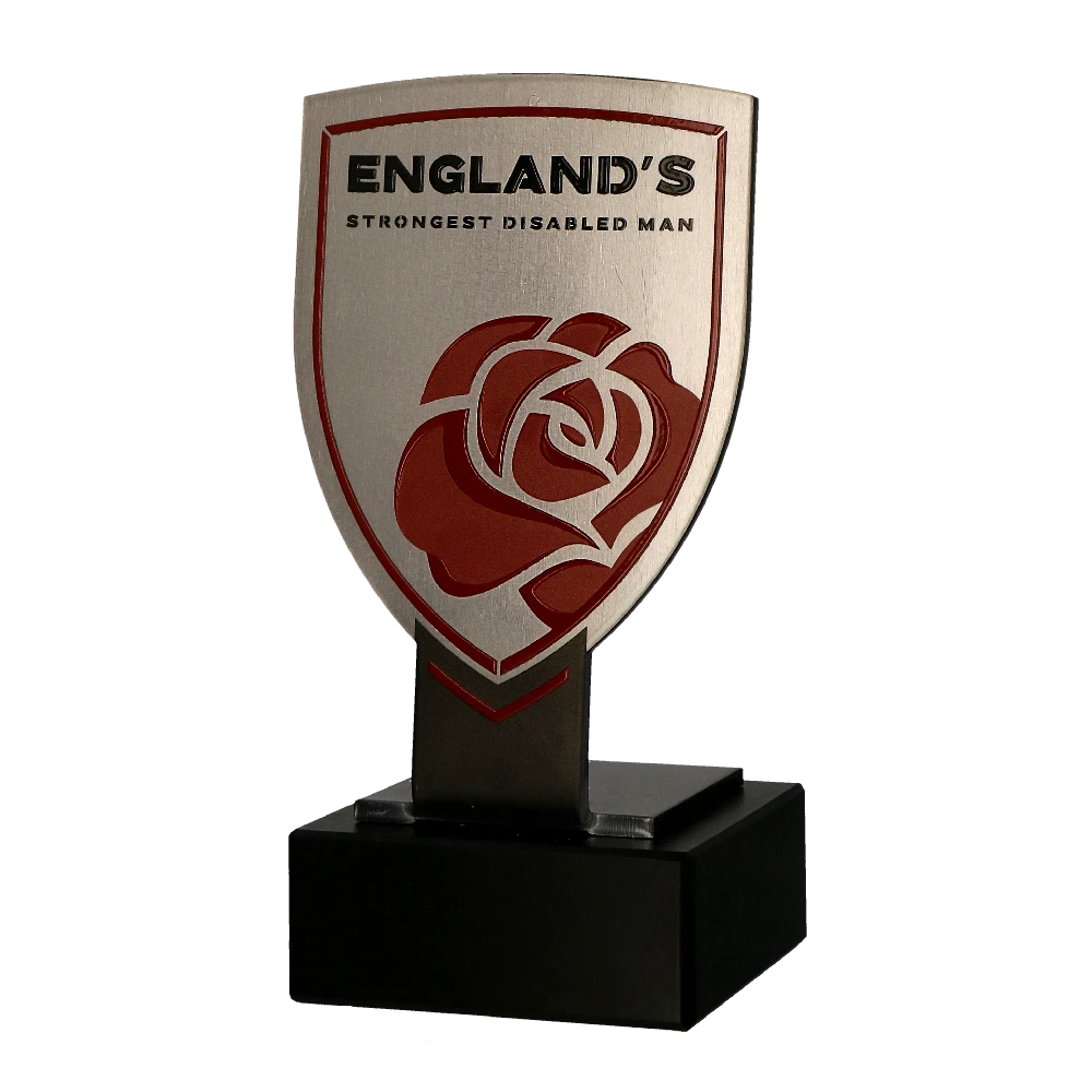 La durata dei trofei dipende da molti fattori. Uno di questi è il materiale, motivo per cui quando abbiamo creato i trofei per il GB Strongest Disabled Man, abbiamo scelto il metallo solido. I premi sono stati realizzati in acciaio spesso e posizionati su una pesante base in marmo. Tutto questo simboleggia la forza e la resilienza necessarie negli sport di potenza. Inoltre, questi trofei personalizzati sono pieni di decorazioni realizzate con stampa colorata. La decorazione simile a una rosa attira particolarmente l’occhio, conferendo all’intero set un carattere distinto.