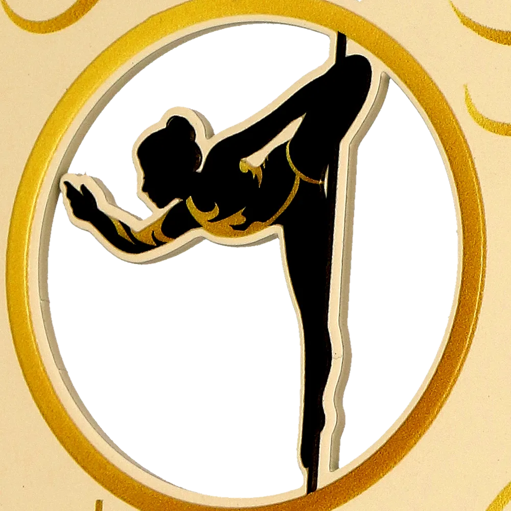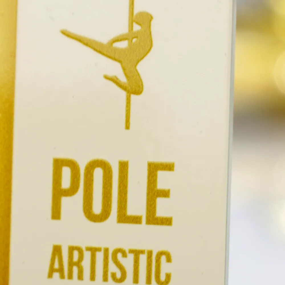 Un trofeo di danza dedicato alla competizione Pole Artistic Hungary, distinto dal suo design moderno e artistico. I premi sono realizzati in acciaio e adornati con dettagli dorati e una silhouette dinamica di una pole dancer al centro. La stabile base in marmo aggiunge eleganza al trofeo.