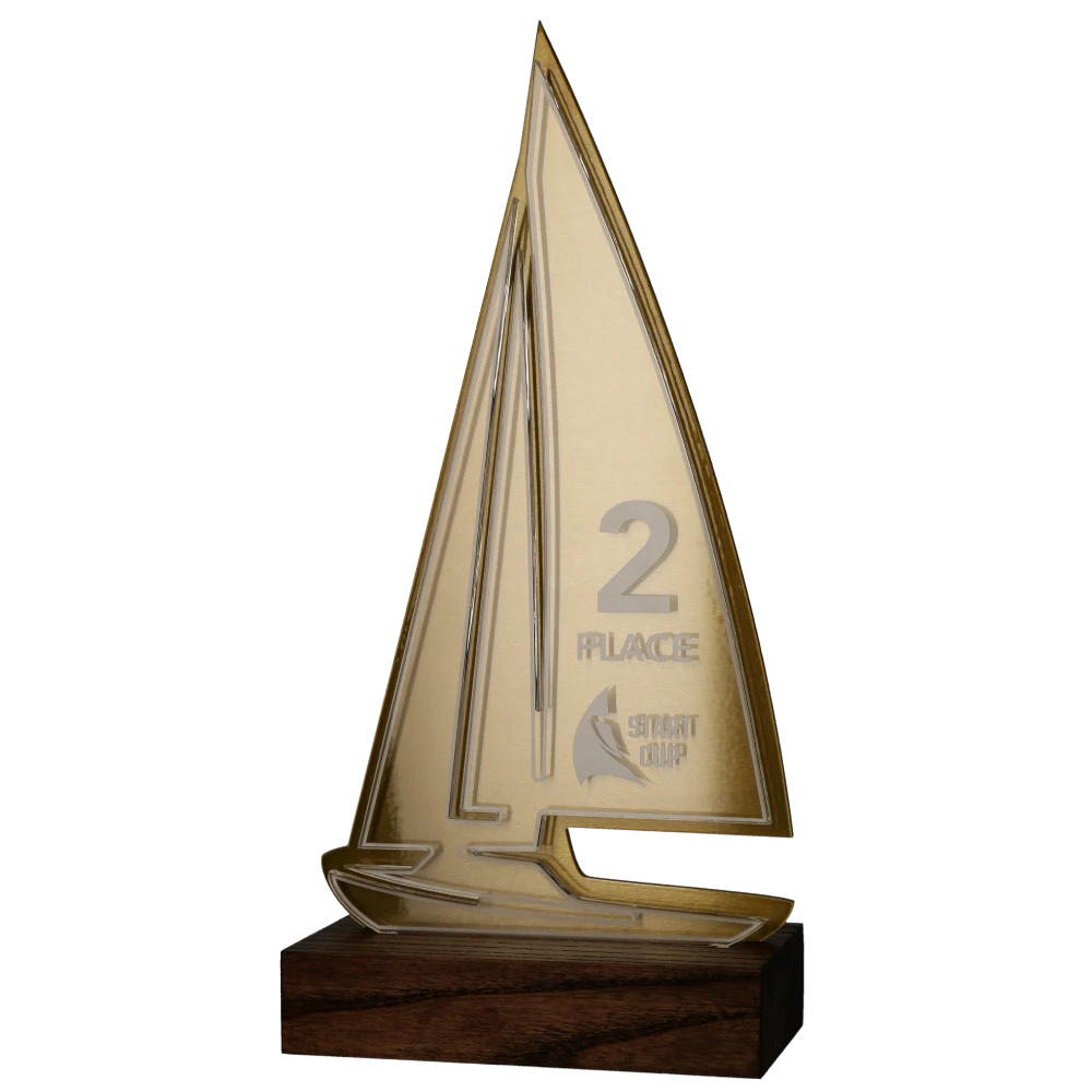I trofei personalizzati per i concorrenti della Start Cup Ragazzi sono come un viaggio in alto mare, pieno di sorprese ed emozioni. Questi bellissimi premi in acrilico, a forma di barche a vela, evocano l’avventura e la passione associate all’elemento dell’acqua. I nostri trofei sono una fusione di metallo, acrilico e una base in legno, rientrando perfettamente nei premi in materiali misti. Abbiamo arricchito i trofei con una stampa colorata che mostra il nome dell’evento. Il design include anche la posizione in classifica. Inoltre, ogni premio di vela è creato con un set che include una medaglia personalizzata. Questo crea un set completo di premi che ogni partecipante mostrerà con orgoglio nella propria collezione.