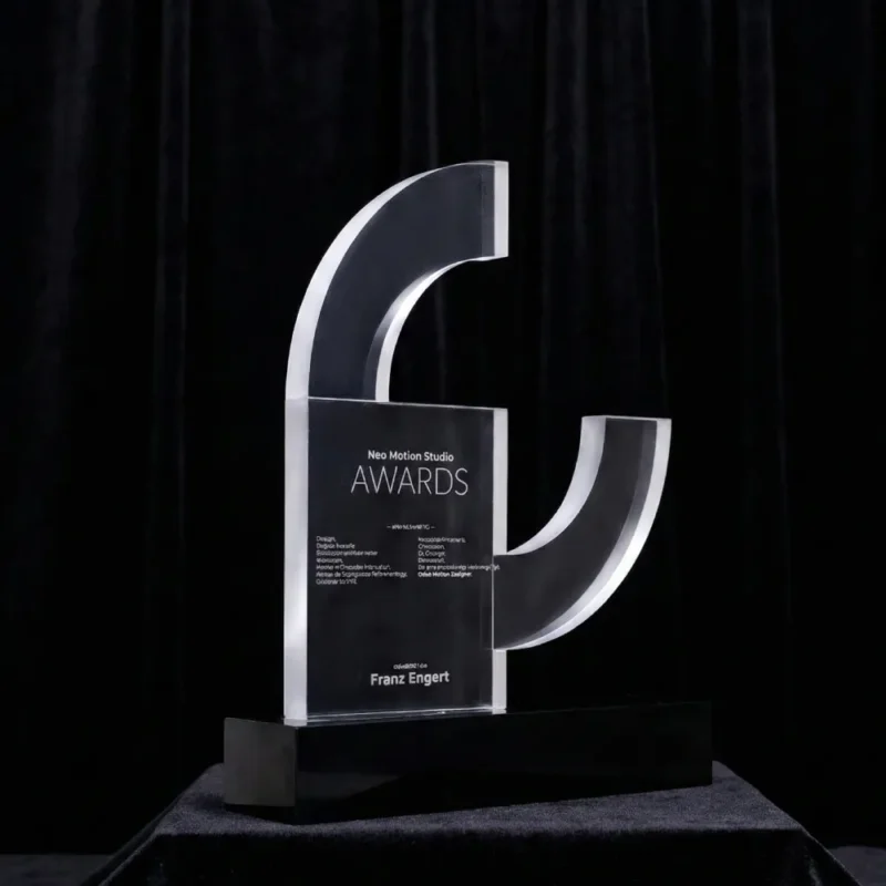 Il vetro e il cristallo ottico sono classici in edizione moderna. Sono ideali per i premi “Dipendente dell’Anno” o “Innovazione dell’Anno”. La loro estetica è associata alla purezza d’intento, alla chiarezza aziendale e al prestigio. Adeguatamente illuminati sul palco, creano un effetto visivo spettacolare che aggiunge fascino all’intero gala.