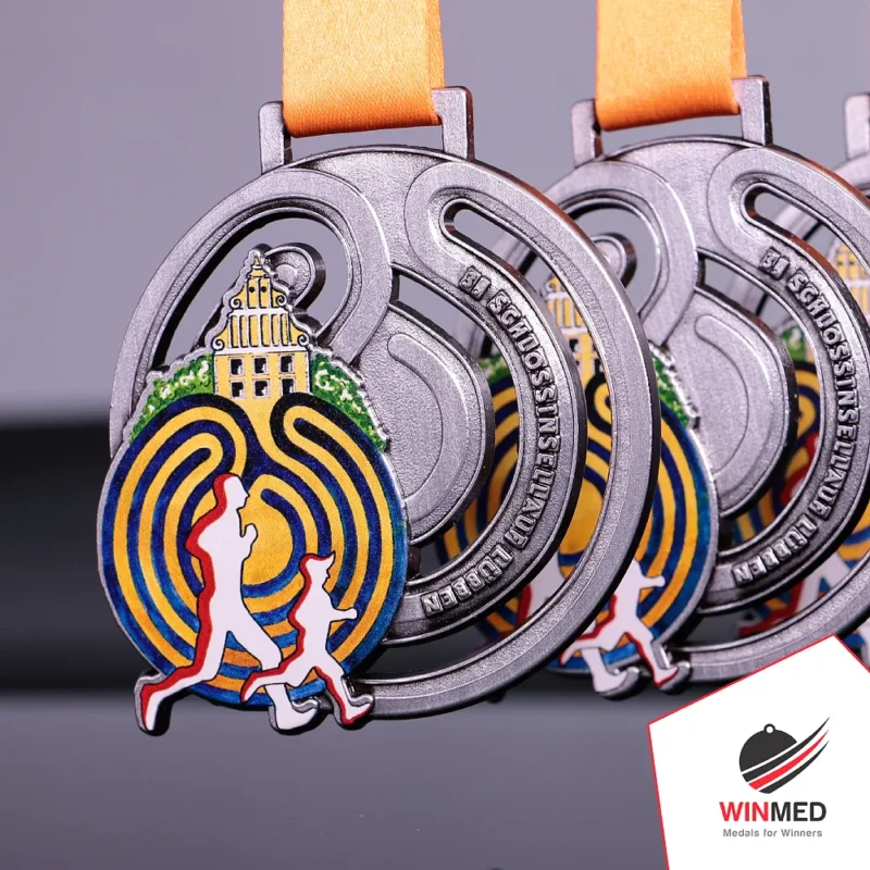 Puoi aggiungere dettagli individuali come la stampa UV su uno o entrambi i lati. C’è anche un’opzione per aggiungere elementi extra realizzati in altri materiali. Ma per favore controlla preventivamente come ciò influisca sul tempo di produzione delle medaglie realizzate su misura.